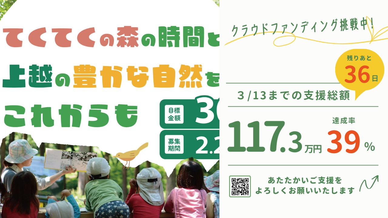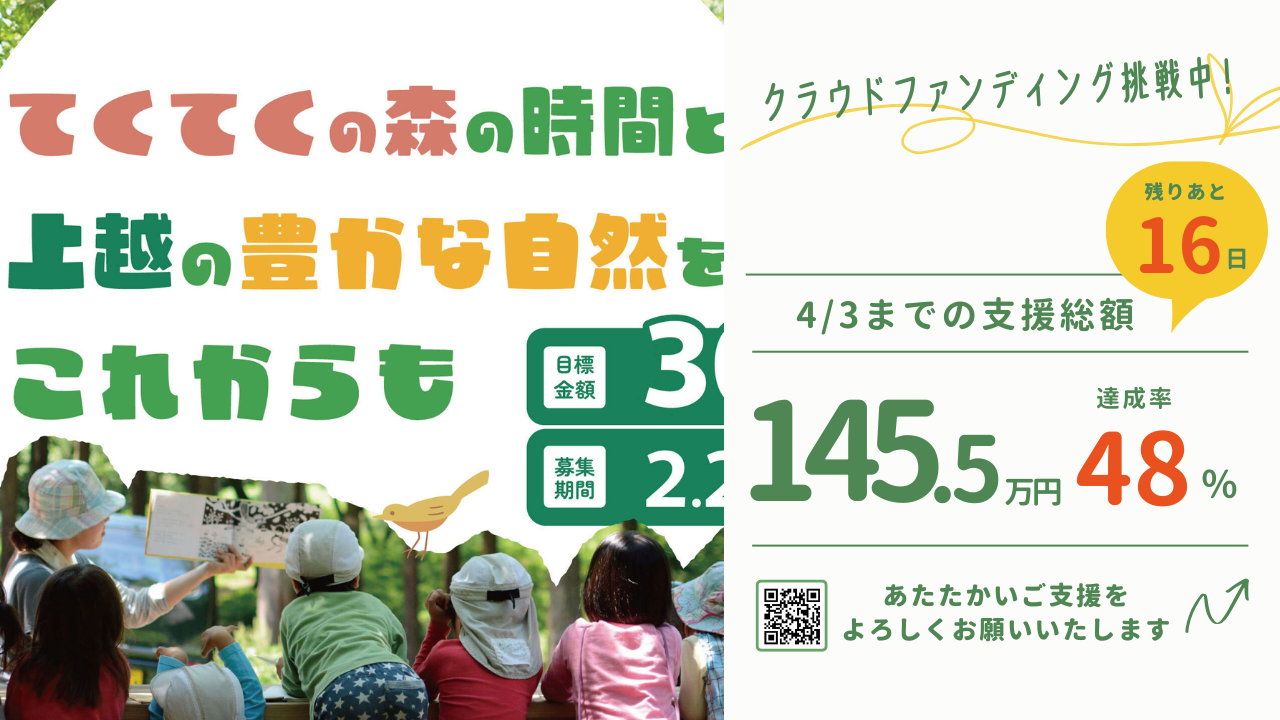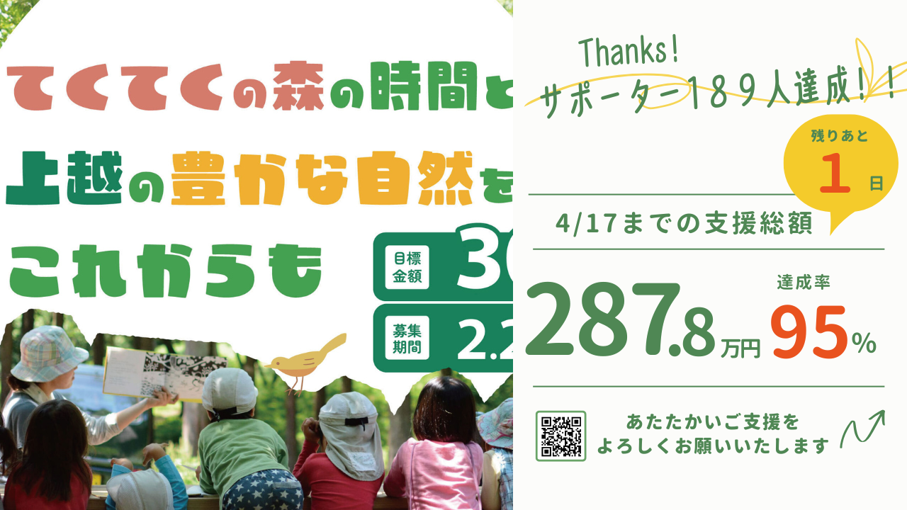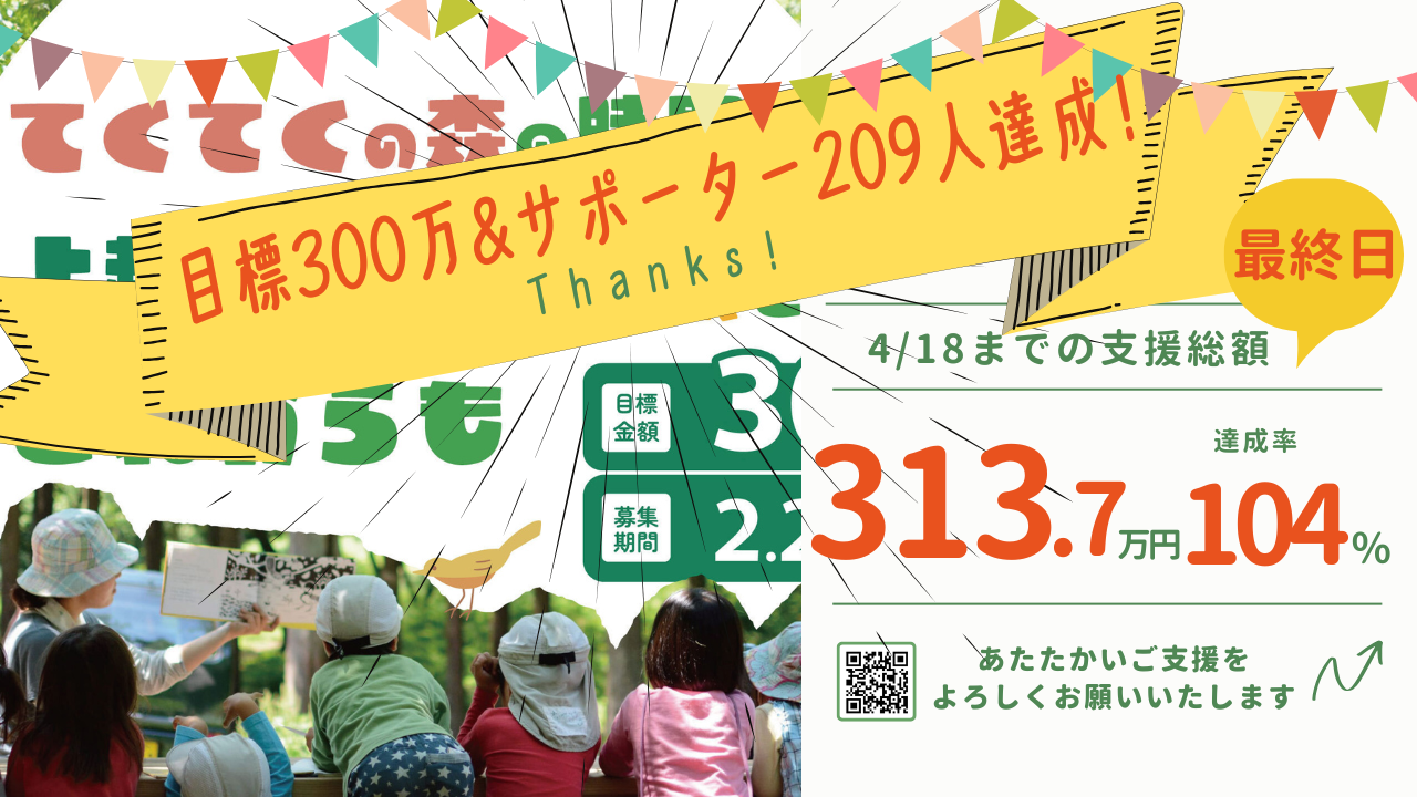 今後も一人でも多くの子どもたちに森の時間を、そして子どもたちと一緒に沢山の大人が森に関わり続けることで守られる山林や農地を残していきたいという想いを宣言して、みなさんにご支援をお願いすることとなりました。