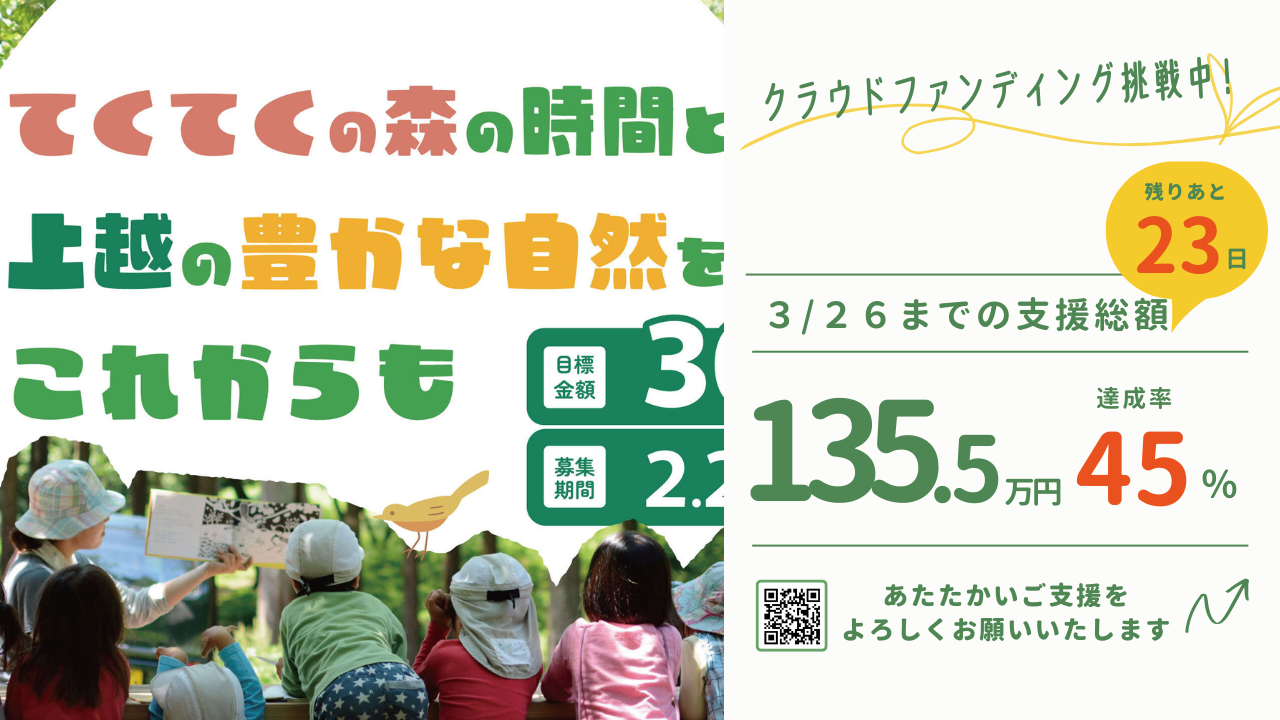 今後も一人でも多くの子どもたちに森の時間を、そして子どもたちと一緒に沢山の大人が森に関わり続けることで守られる山林や農地を残していきたいという想いを宣言して、みなさんにご支援をお願いすることとなりました。