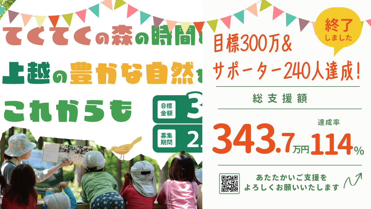 今後も一人でも多くの子どもたちに森の時間を、そして子どもたちと一緒に沢山の大人が森に関わり続けることで守られる山林や農地を残していきたいという想いを宣言して、みなさんにご支援をお願いすることとなりました。
