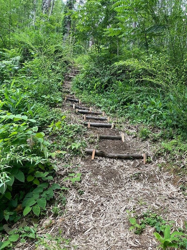 てくてくの細い木を階段の幅に合わせてその場で切って階段を作成しました☆