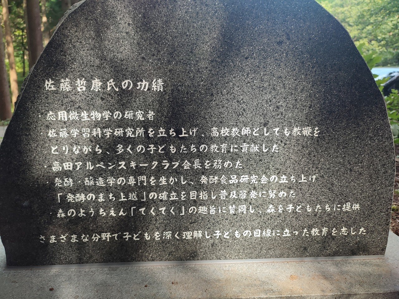 石碑はてくてくの森に入ると正面に見える位置に設置されました。