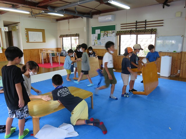 まず午前中は、みんなで学習。わからないところをボランティアで来てくれたお兄ちゃんやお姉ちゃんに教えてもらう時間でした。