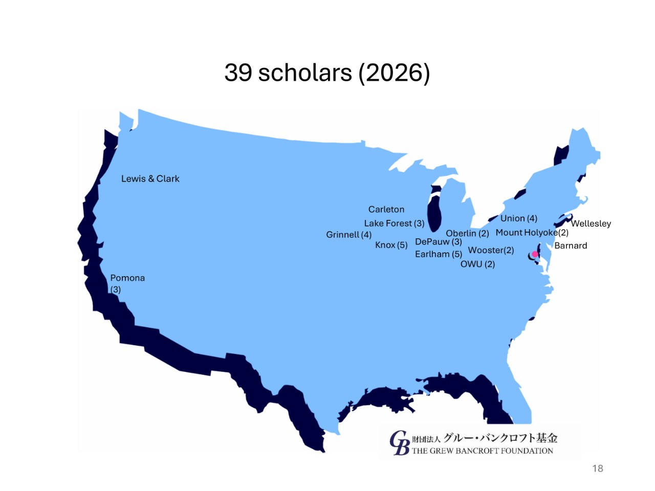 - この捨松スカラーの留学先は、捨松も学んだ、歴史的にも多くの女性リーダーを輩出している米国のリベラルアーツ大学6校を対象とします。(Barnard,Bryn Mawr, Mount Holyoke,Smith, Vassar, Wellesley)