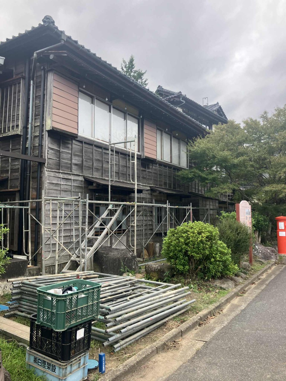 10月6日(月)旧館建物に足場をかけ始めました。外壁に防腐塗料を塗布します。