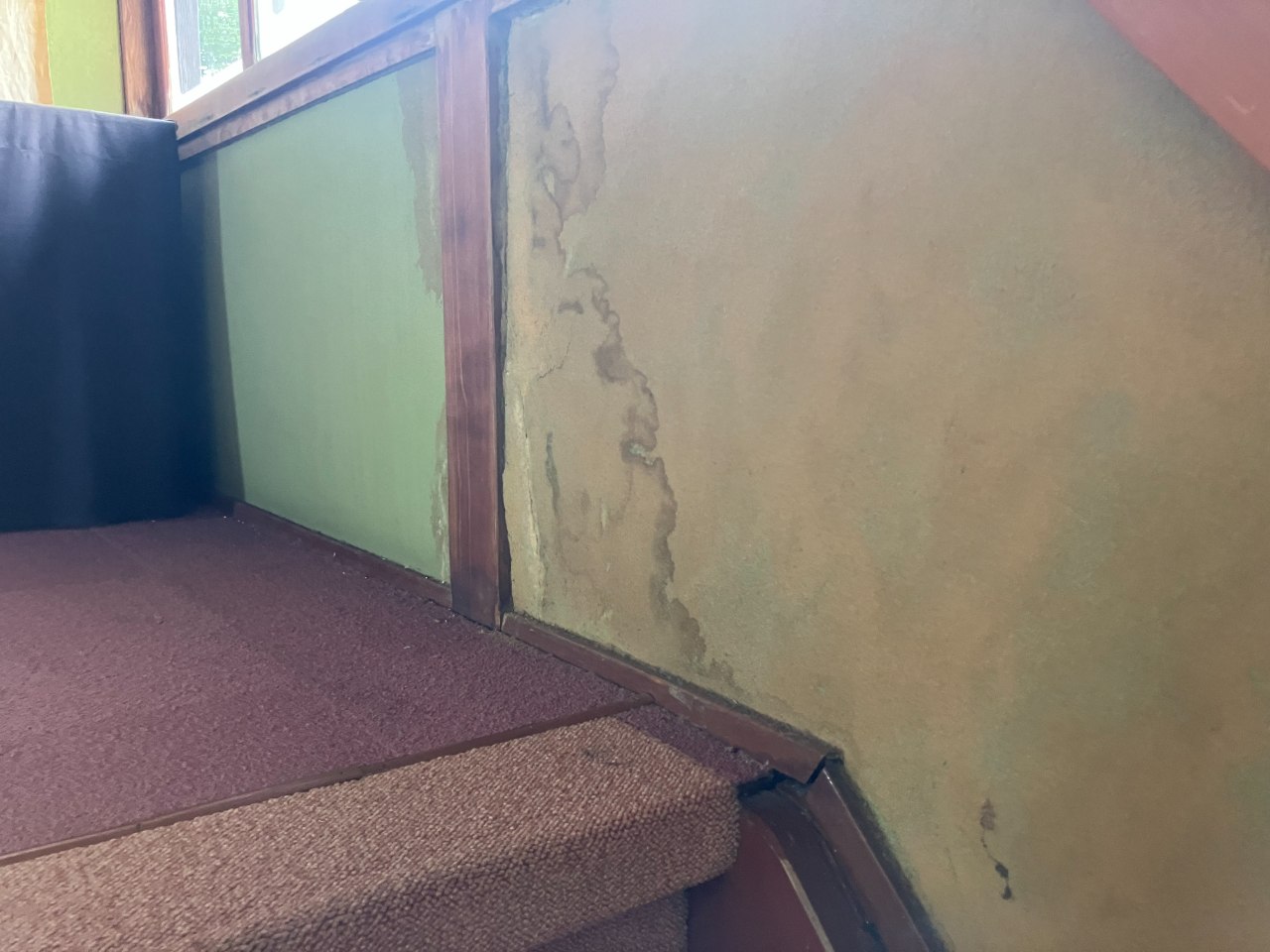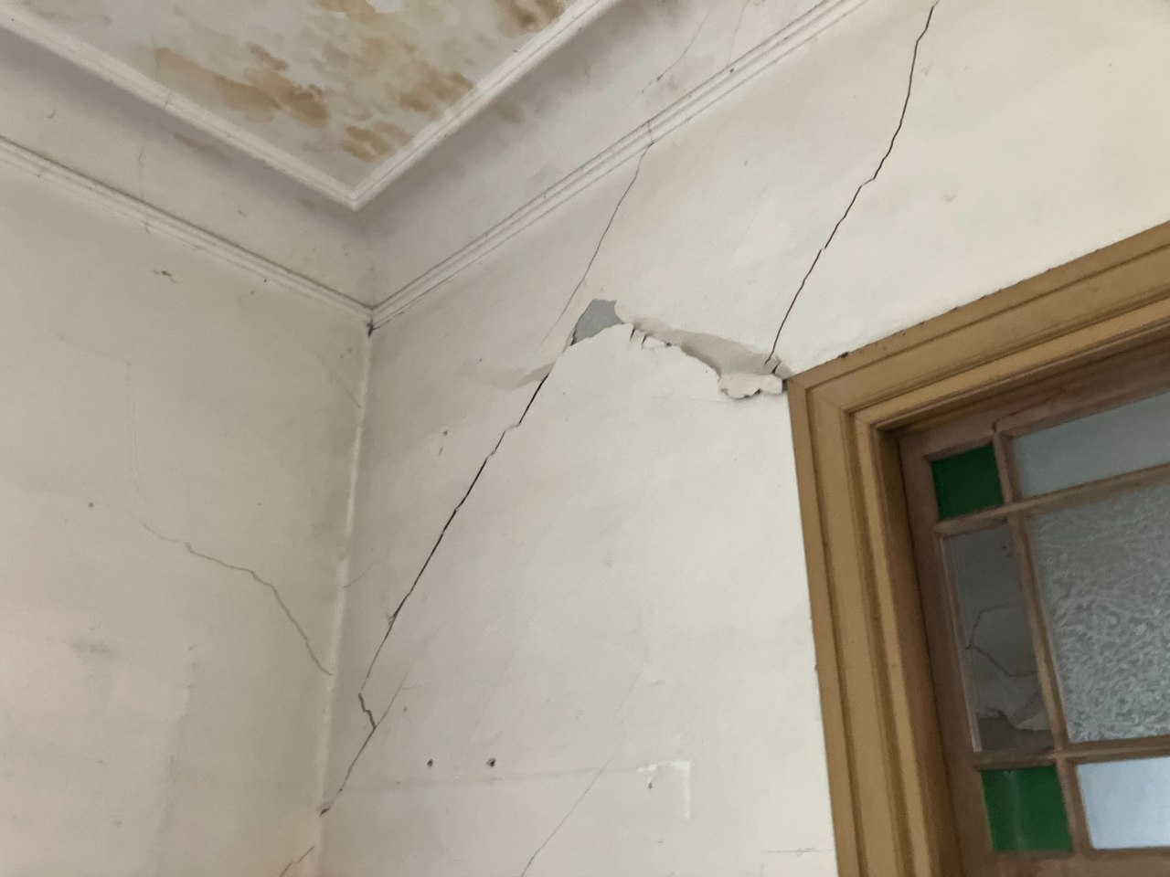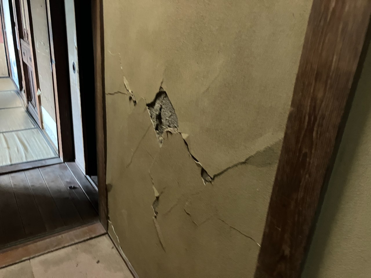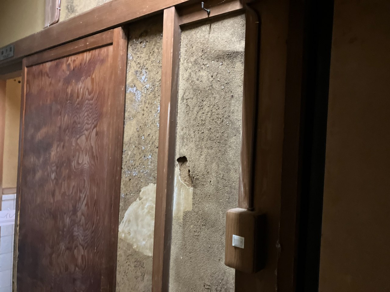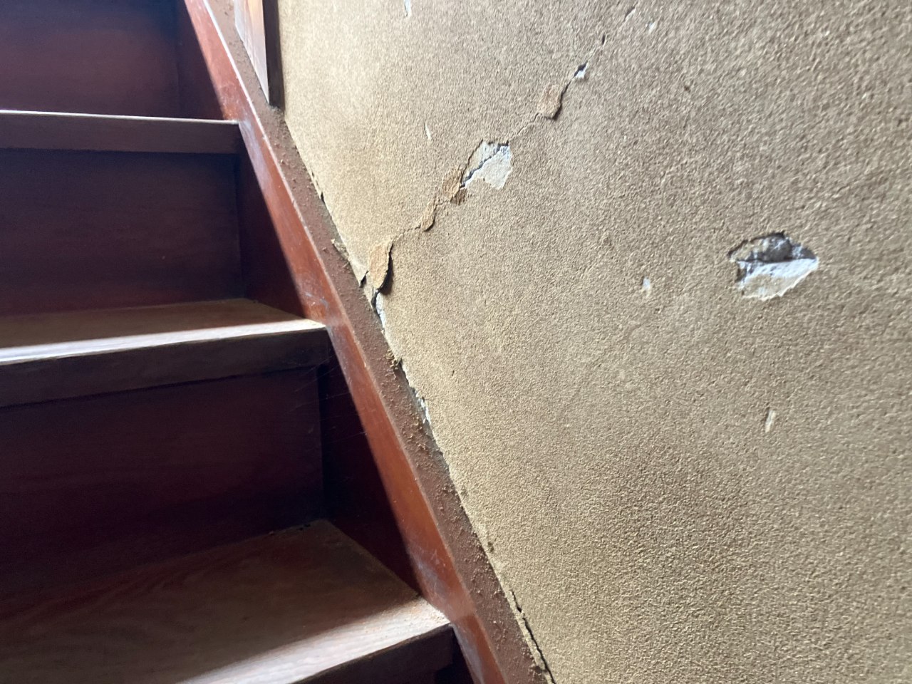 ボランティアの力によって八鶴館の保存活動が行われていますが、建物が老朽化は加速していっています。内外の壁に亀裂が目立ち、腐食が進んでいます。