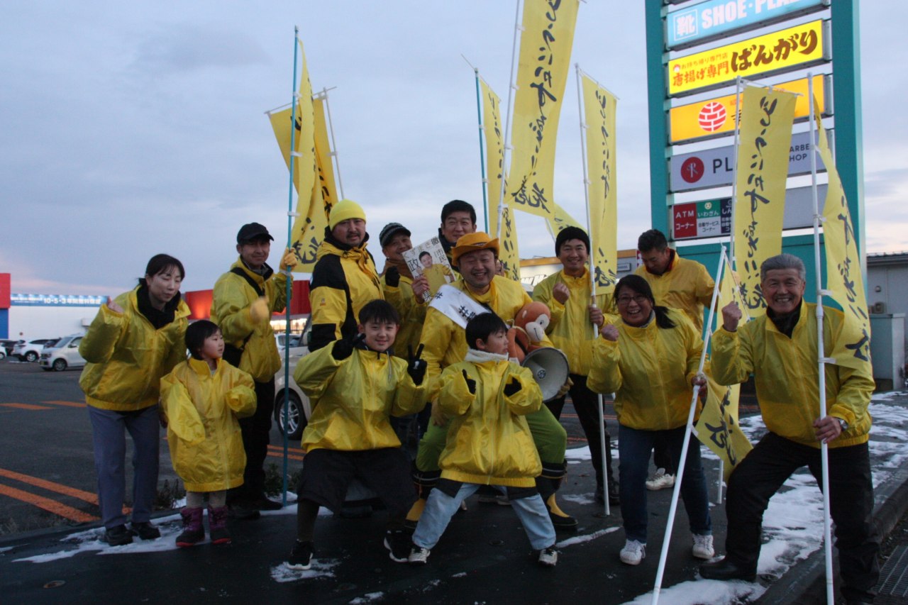 私は、「市民一人ひとりの挑戦が応援される花巻」を目指して活動しています。そして私がまずそれを自分の意思ではじめて、今皆さんから応援して頂いてます。私が「花巻を変えたい」とその一歩を踏み出しましたが、到底私一人で出来るものではありません。年末年始の9連休は毎日仲間達が一緒に街頭に立ってくれました。仲間と共に一歩一歩進めております!!