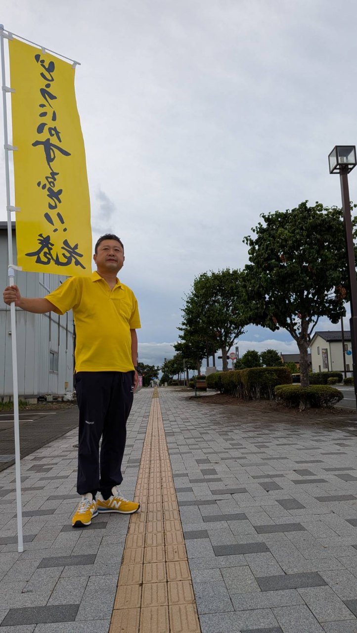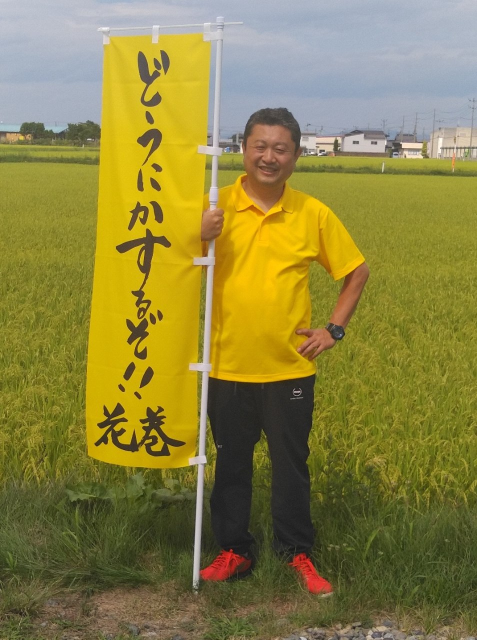 私の今回のイメージカラーを黄色にしています。黄色には、太陽、希望、エネルギーのようなポジティブなイメージがあります。花巻ええじゃない会という活動をしていた時に、24時間で100キロ歩くというイベントをしました。足は痛くなるは、疲労困憊するわで夜中の頃は辞めたくなるのですが、太陽が出ると力がみなぎるという体験をしました。「黄色いおじさん」と呼ばれ。今の花巻の希望になりたいと思います!