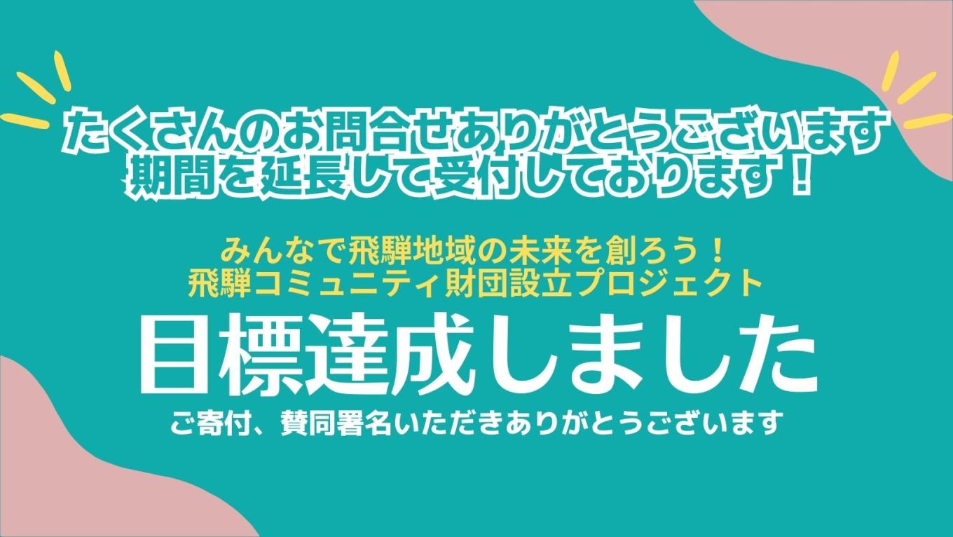 飛騨コミュニティ財団設立プロジェクトとして1月12日から実施していましたクラウドファンディング&設立寄付募集を4月30日に無事、終了いたしました!