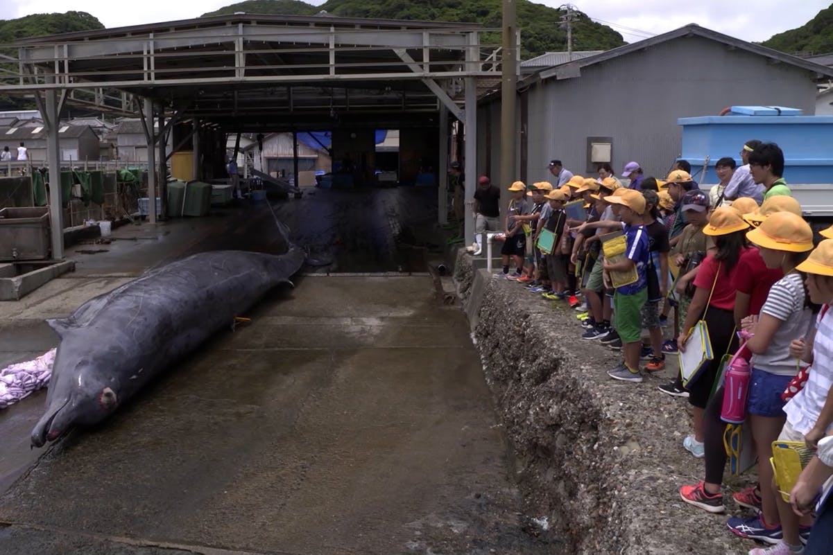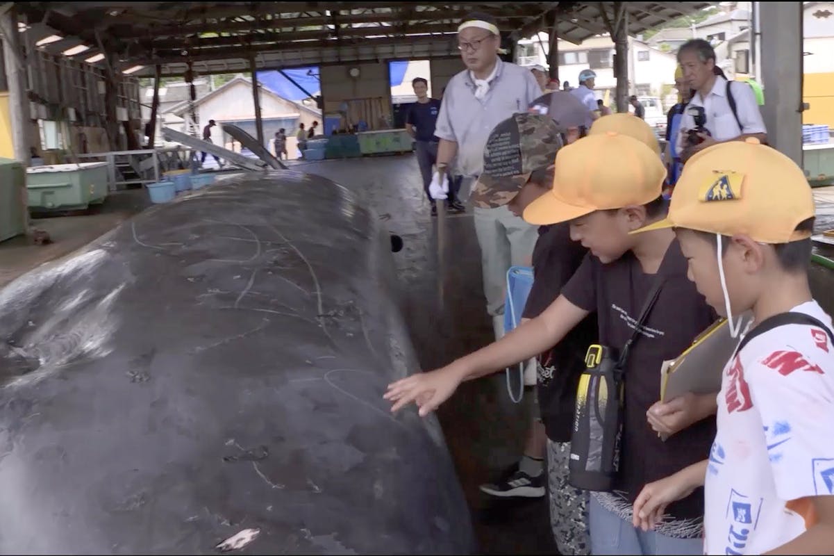 地元の小学校では、5年生の地域学習にこの捕鯨の見学を取り入れています。毎年、鯨の漁期の最初に子どもたちが来て、鯨が引き揚げられるところから解体されるところまで見学し、その鯨で作った竜田揚げを食べるところまでが授業です。地域の産業を知るとともに、「人はほかの命をいただいて生きている」ことを知り、食のありがたさ、命の尊さを学ぶ貴重な体験となっています。