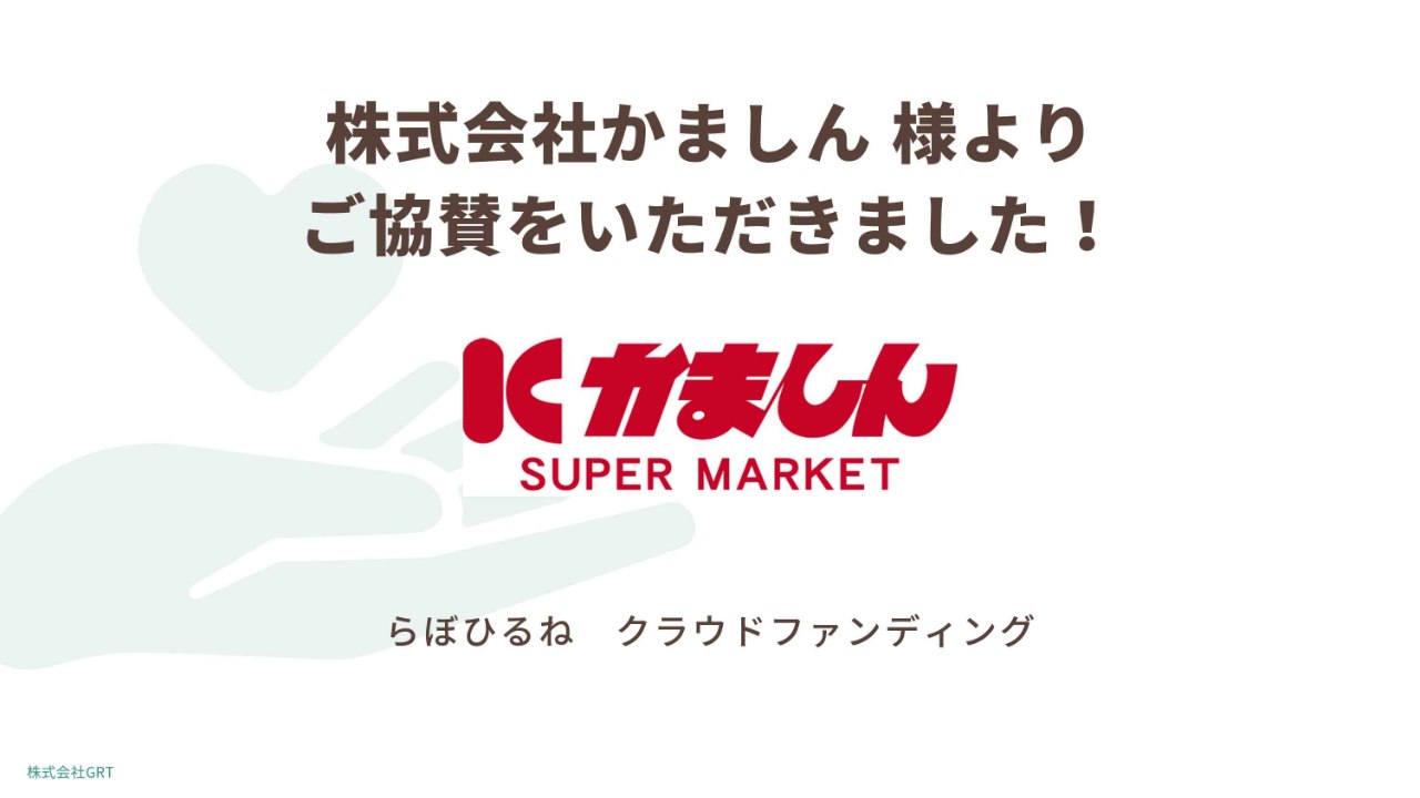 2025-08-16 15:00【株式会社かましん】さまより温かいご協賛をいただきました!かましんさまは地域に根ざし日々の暮らしを支えるスーパーマーケットとして、まちや地域に寄り添った事業を展開されています。ひるねも日々利用させて頂いております!(かまのしんというキャラクターが可愛いのです、皆様知ってますか) 今回も地域の発展のため「らぼひるね」プロジェクトに協賛をいただきました。本当にありがとうございます! 皆さまからの温かい応援のおかげで、本日目標の75%を達成です。 残り約2週間!引き続き、ご支援・ご協力をどうぞよろしくお願いいたします。2025-08-16 15:00【株式会社かましん】さまより温かいご協賛をいただきました!かましんさまは地域に根ざし日々の暮らしを支えるスーパーマーケットとして、まちや地域に寄り添った事業を展開されています。ひるねも日々利用させて頂いております!(かまのしんというキャラクターが可愛いのです、皆様知ってますか) 今回も地域の発展のため「らぼひるね」プロジェクトに協賛をいただきました。本当にありがとうございます! 皆さまからの温かい応援のおかげで、本日目標の75%を達成です。 残り約2週間!引き続き、ご支援・ご協力をどうぞよろしくお願いいたします。