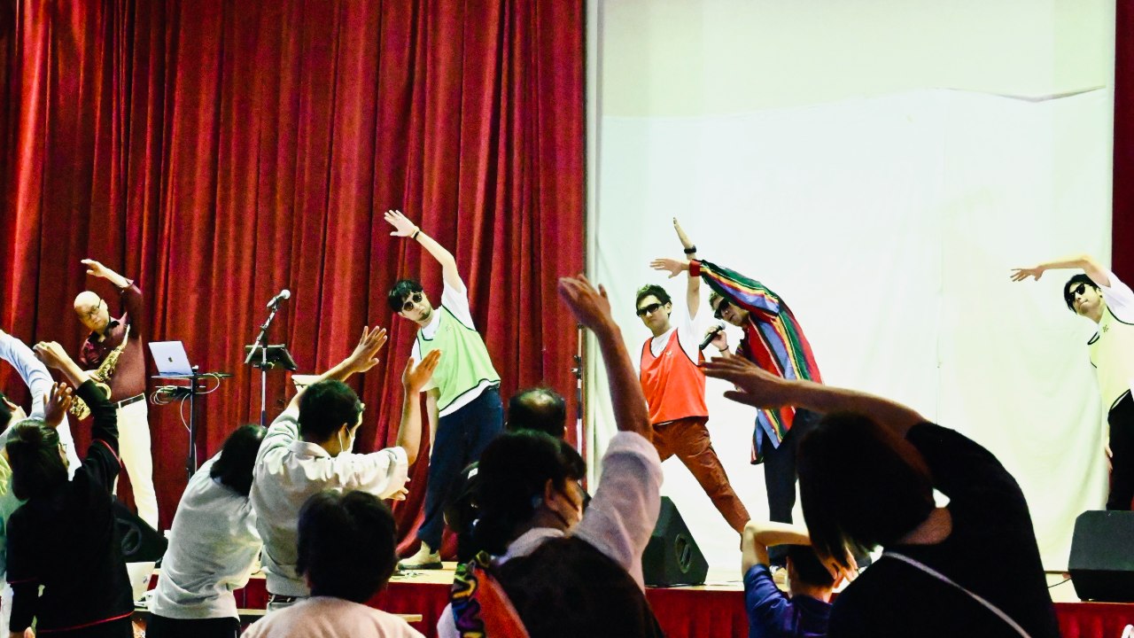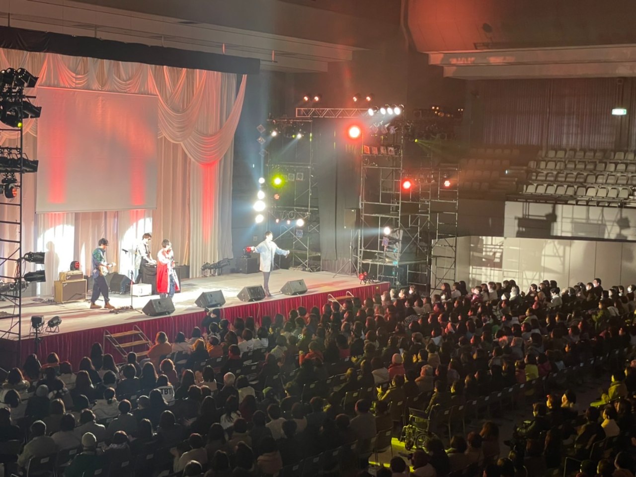 今年で3年連続、3回目となります弘済学園に今年も伺い生演奏をさせて頂きました。開演前に、小堀理事長からご挨拶を頂きました。理事⻑が「歌ってくれる⼈?」「踊ってくれる⼈?」と明るく声をかけると、⼦供たちは元気いっぱいに「はーい」と反応し、⼼から楽しむ準備が出来た様⼦でした。