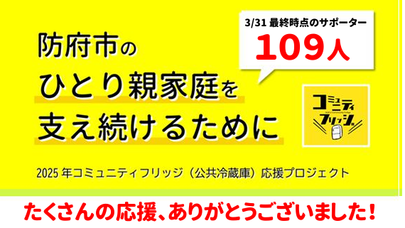 【サポーター100人目標 最終109人無事達成しました!】