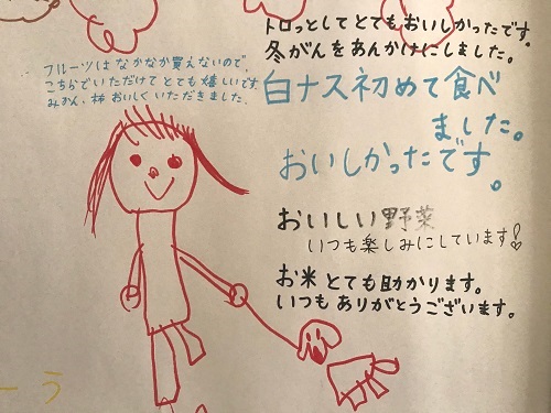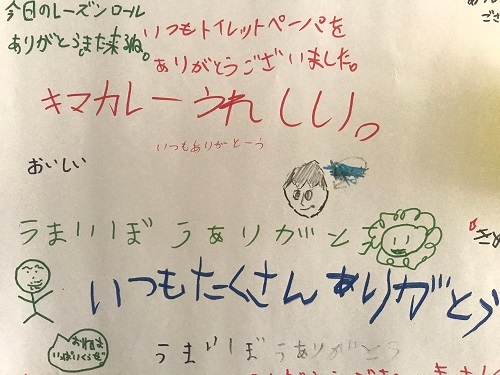 子どもの書いた可愛いイラストもあり、なごみます。