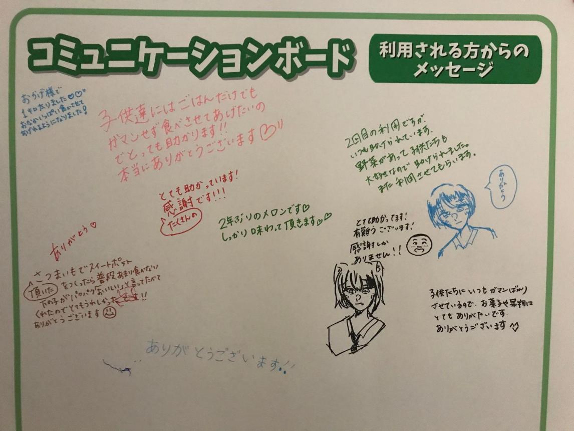 コミュニケーションボードにもたくさんのメッセージが書かれていて、とてもにぎやかです。