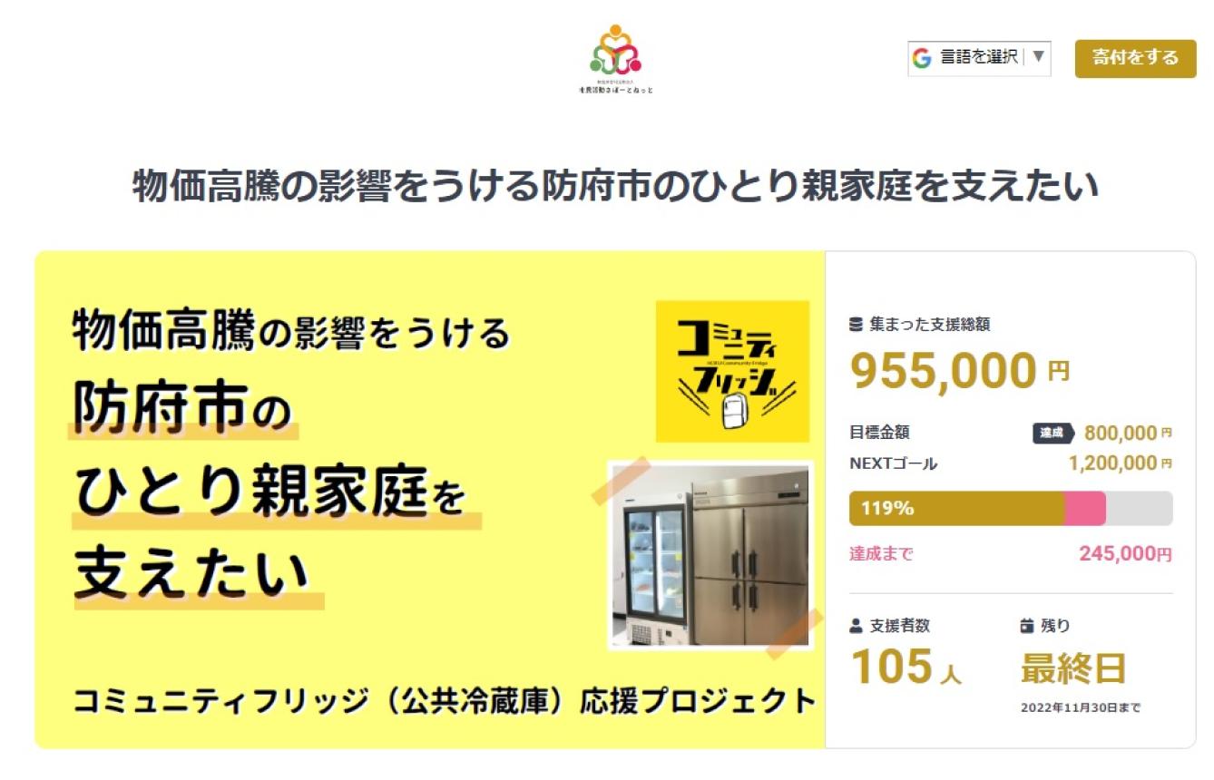 私たち「特定非営利活動法人市民活動さぽーとねっと」は、山口県防府市で、ひとり親家庭を対象にした食料品や日用品を自由に受け取れる場所「コミュニティフリッジ(公共冷蔵庫)」を運営しています。