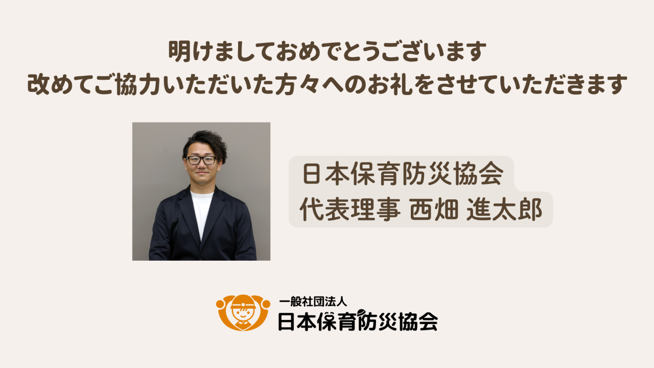 新年あけましておめでとうございます。一般社団法人日本保育防災協会 代表理事の西畑です。