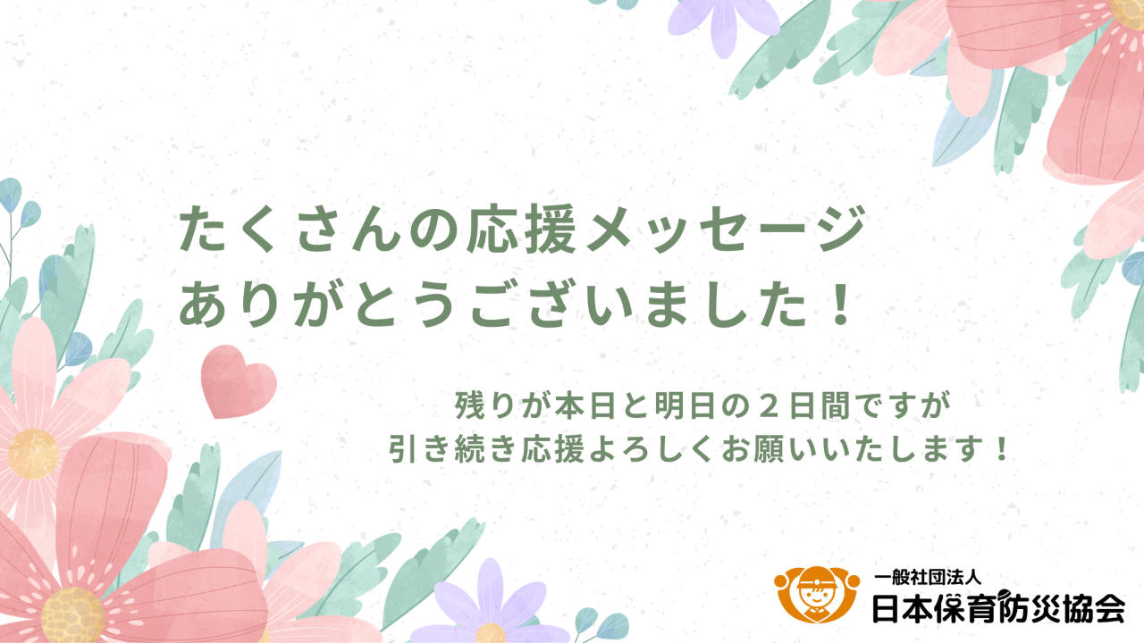 ・園に関わる全ての方や多くの子どもたちに笑顔が戻りますように!微力ではありますがずっと応援し続けます!(T社さん)