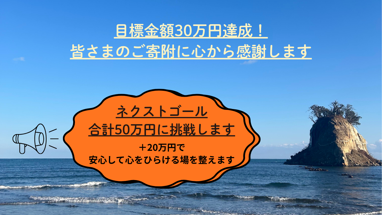 今回のネクストゴールは、当初30万円にプラス20万円のご支援をいただき、合計50万円を目指す挑戦です。