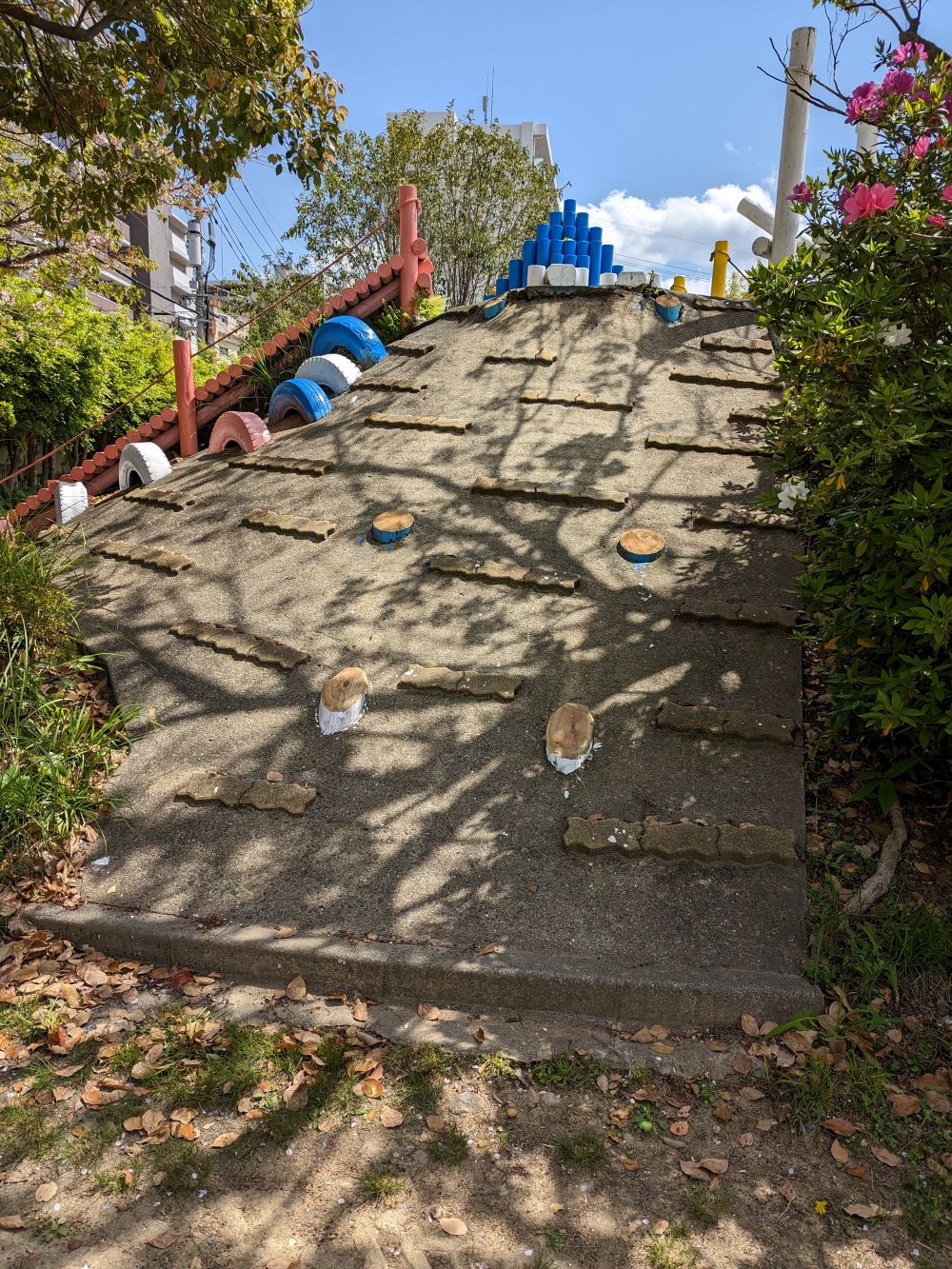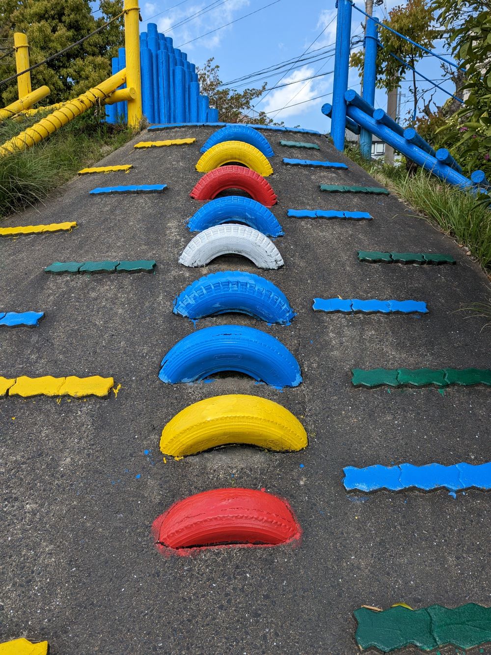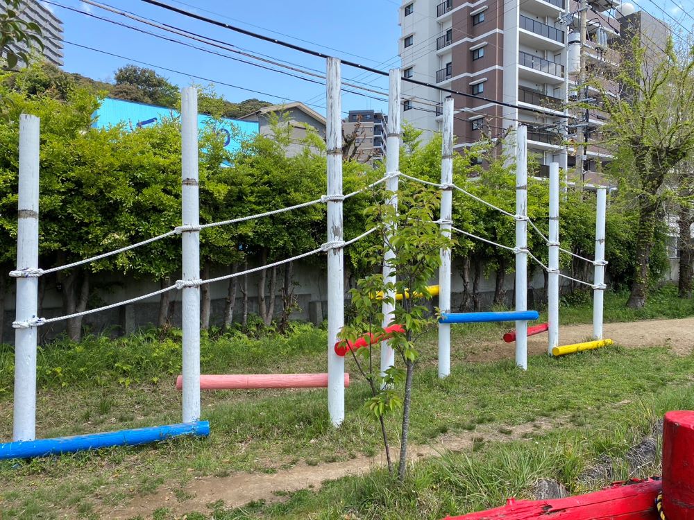劣化で色が剥げていた遊具の色を塗り替えました。