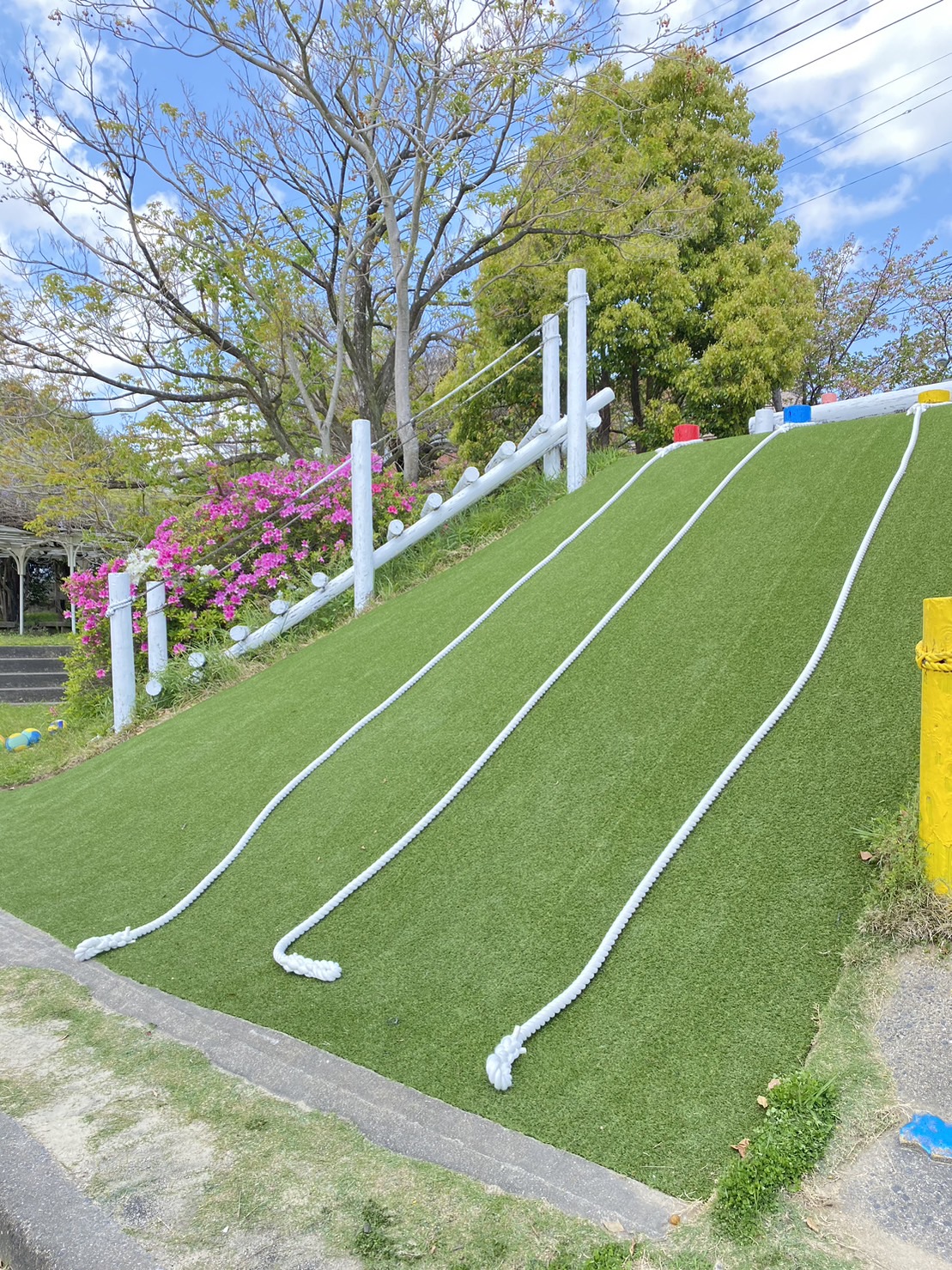 剥がれていた人口芝生と、劣化したロープを張り替えました
