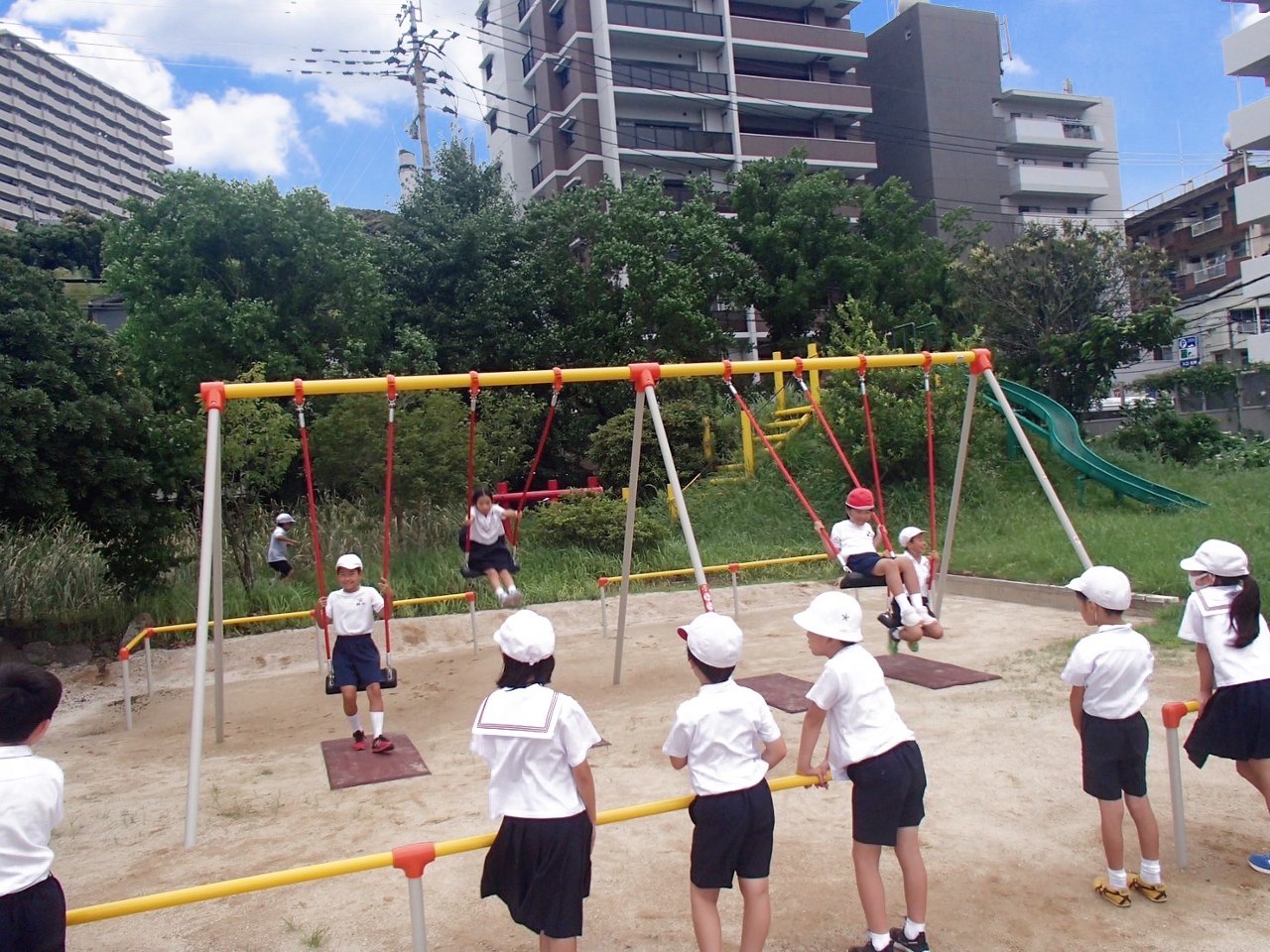 ブランコで遊ぶ子どもたち☺