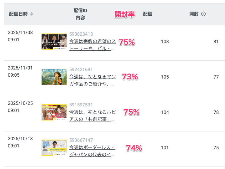 LINEによる記事お知らせの開封率も、「非常に高い水準」とされている70%前後を毎週キープし、共感いただける読者を丁寧に増やしながら、順調な成長を遂げています。(広告は行わず、口コミや読者の方からのシェアで広がっています。)