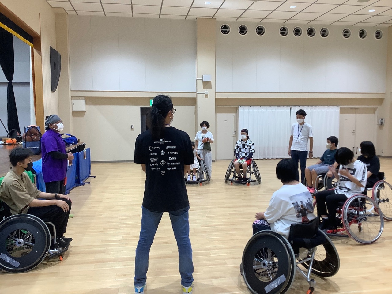 参加のハードルは高くありません。まずはそれぞれに、車いすを使って動いてるところから始まります。慣れてくると、鬼ごっこや、ボールを使ったパス&キャッチ、そして攻撃と守備などを体験し、ゲーム(試合)に参加していきます。時に笑い合い、時に真剣になりながら、活動が行われます。