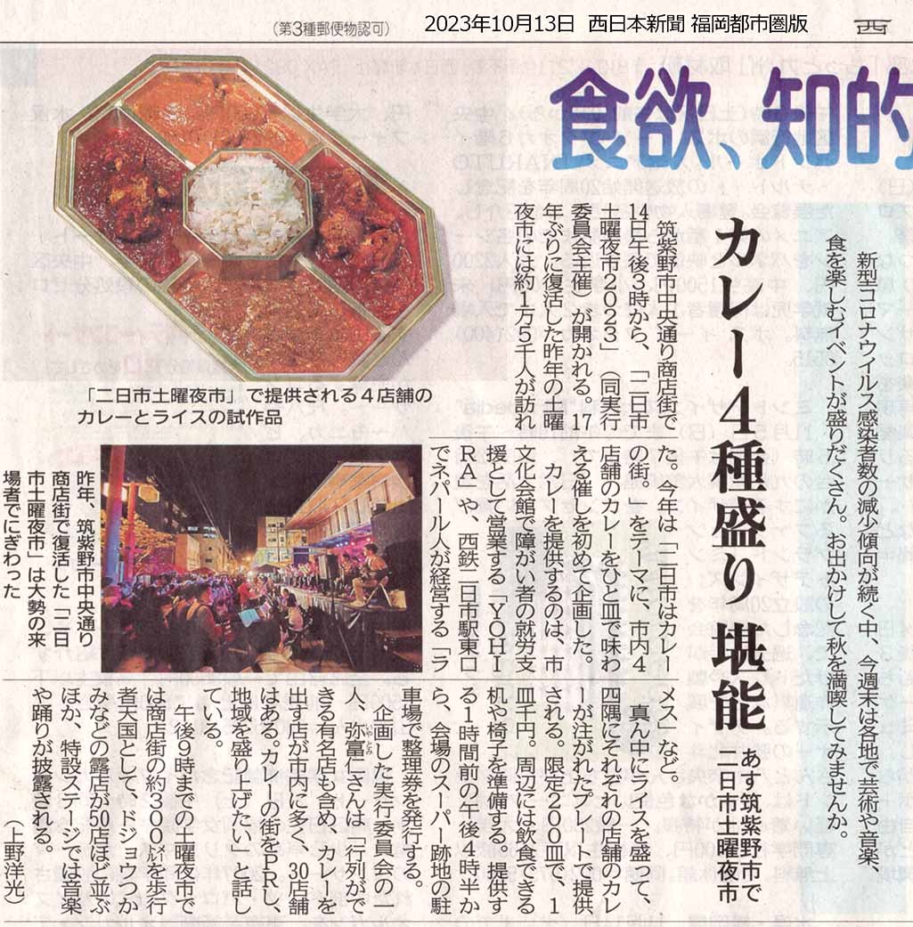 また一昨年より、約40店舗の出店以外に【二日市はカレーの街。】という食のイベントも開催。