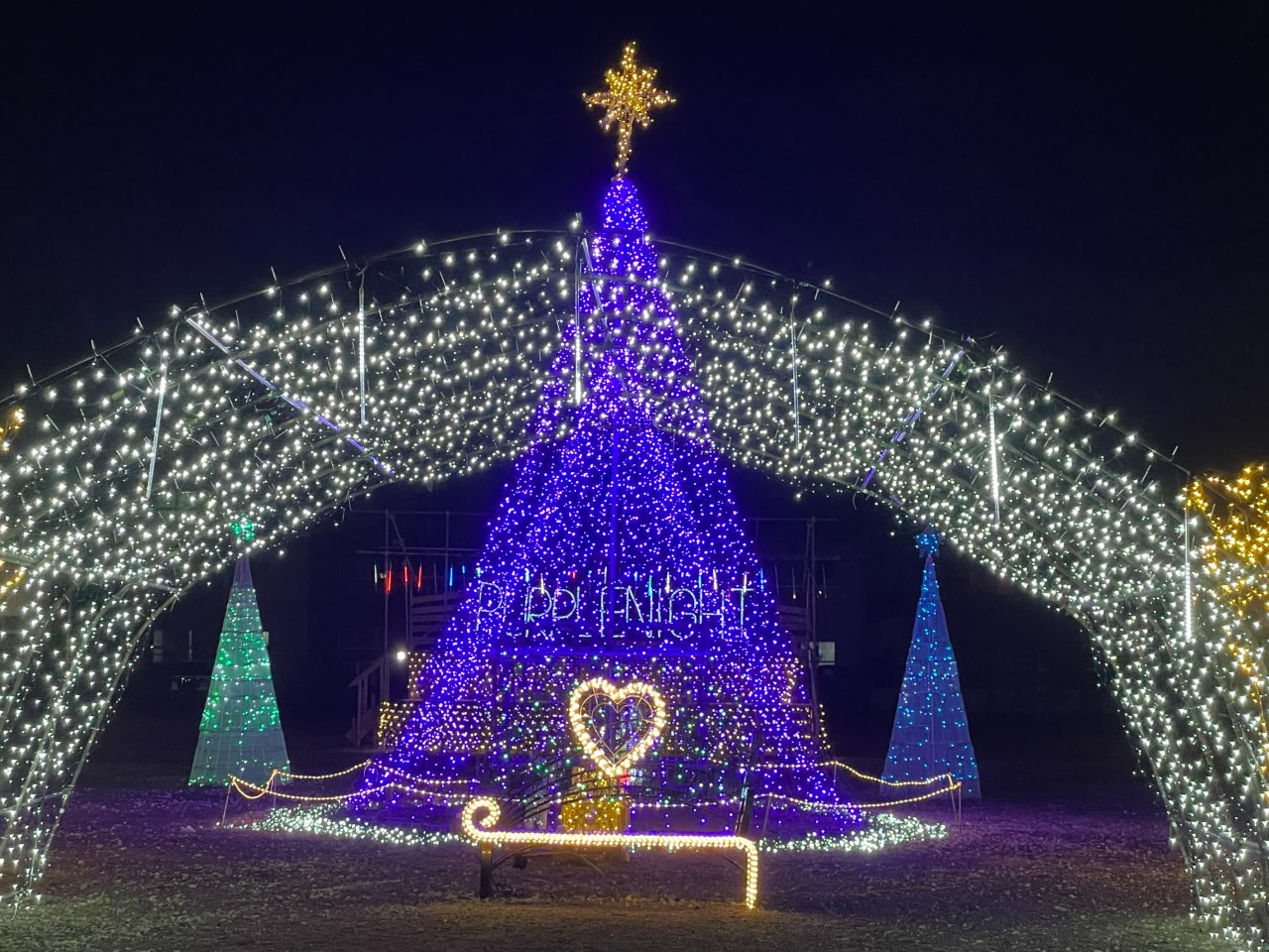 • 中央通り商店街内の広場をメイン会場に、JR二日市駅東口、商店街街路樹、湯町公民館など複数エリアにイルミネーションを設置