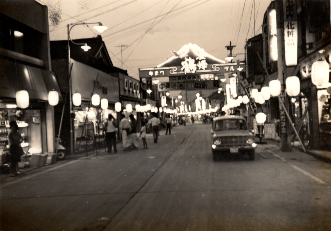 「土曜夜市」は、筑紫野市で生まれ育った、いま40代以上のオトナたちにとって、子ども時代の夏の思い出です。きらめく大きなステージでの連隊ショーに歌謡ショー、並ぶ提灯の下での金魚すくいやたこ焼きやりんご飴などの露店。いまもキラキラと輝く土曜夜市の思い出は、同窓会になると必ず話題に出るほどです。