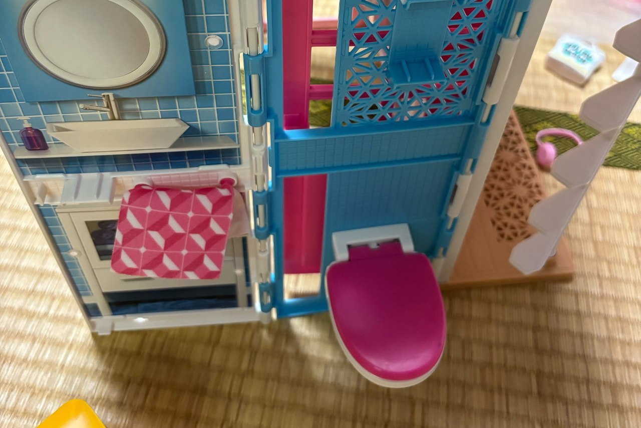 バービーハウスには洋式トイレも付いていて、これは、人形で遊んでいた子ども達の会話です。
