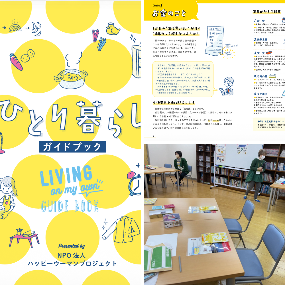 私たちは、2012年から富山県内の施設で生活に必要な基礎知識を伝える講座を続けています。お金の管理や食事づくり、人づき合いの方法などを伝え、ガイドブックを“お守り代わり”に手渡しています。困ったときに思い出してもらえるつながりを残すことも、この講座の大切な役割です。