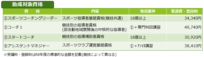 中学校の部活の地域展開を担うスポーツ指導等の資格取得を補助し、地域スポーツを支える人材を育成します。
