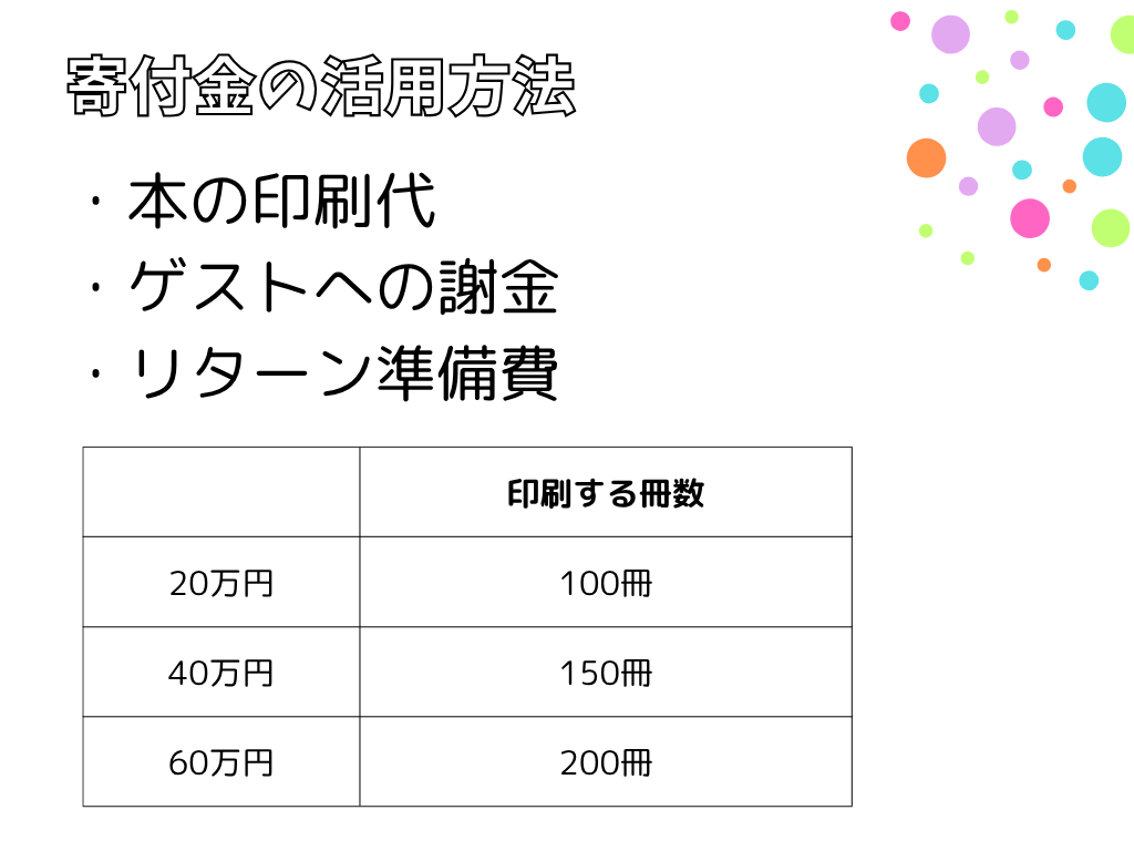 ※イドミィの卒業生など10代・20代の子たちの中には「私も寄付したい!」という方がいます。すごく素敵な心の持ち主だなと感じます。彼ら彼女らが参加しやすいように設定しました。