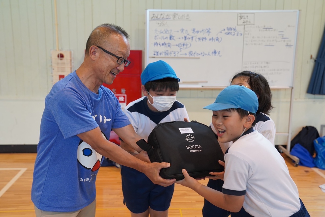 私たちにボッチャ体験講習会を依頼していただいたところに、ボッチャボールセットをプレゼントしています。7月から8月現在までに21か所にプレゼントができ、皆さんに喜ばれています。受け取ったボールセットを使い、いろいろなシーンでのボッチャの活動を写真に撮って送ってもらうことをお願いしています。学校だけでなく、地域自治会や高齢者施設、一般企業にも広がり、ボッチャへの関心は確実に高まっていると感じます。