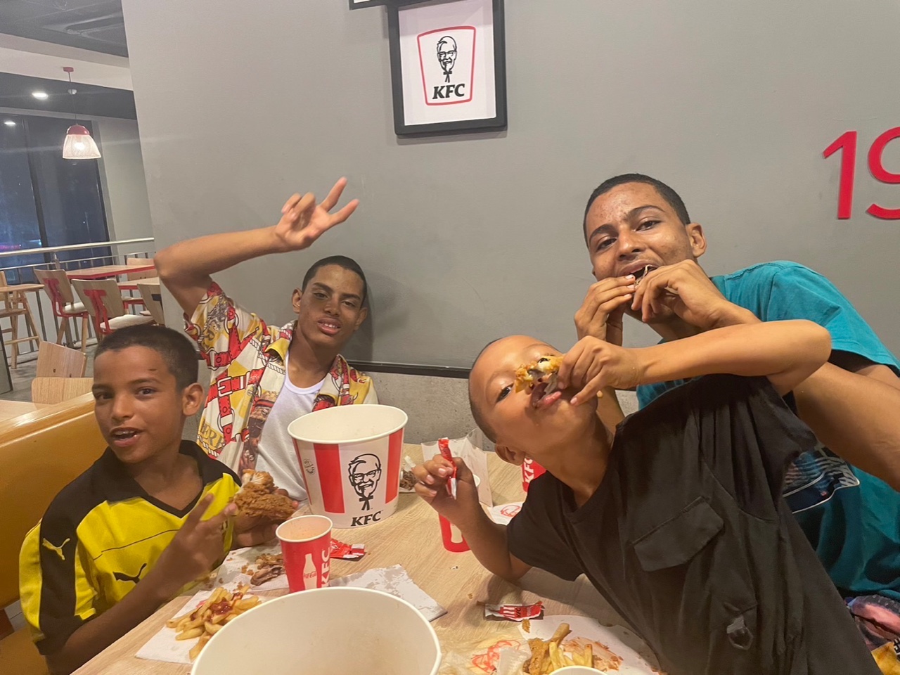 新たに誰かが学校に行き始めたら、登校初日にみんなでケンタッキーに行ってお祝いをします。