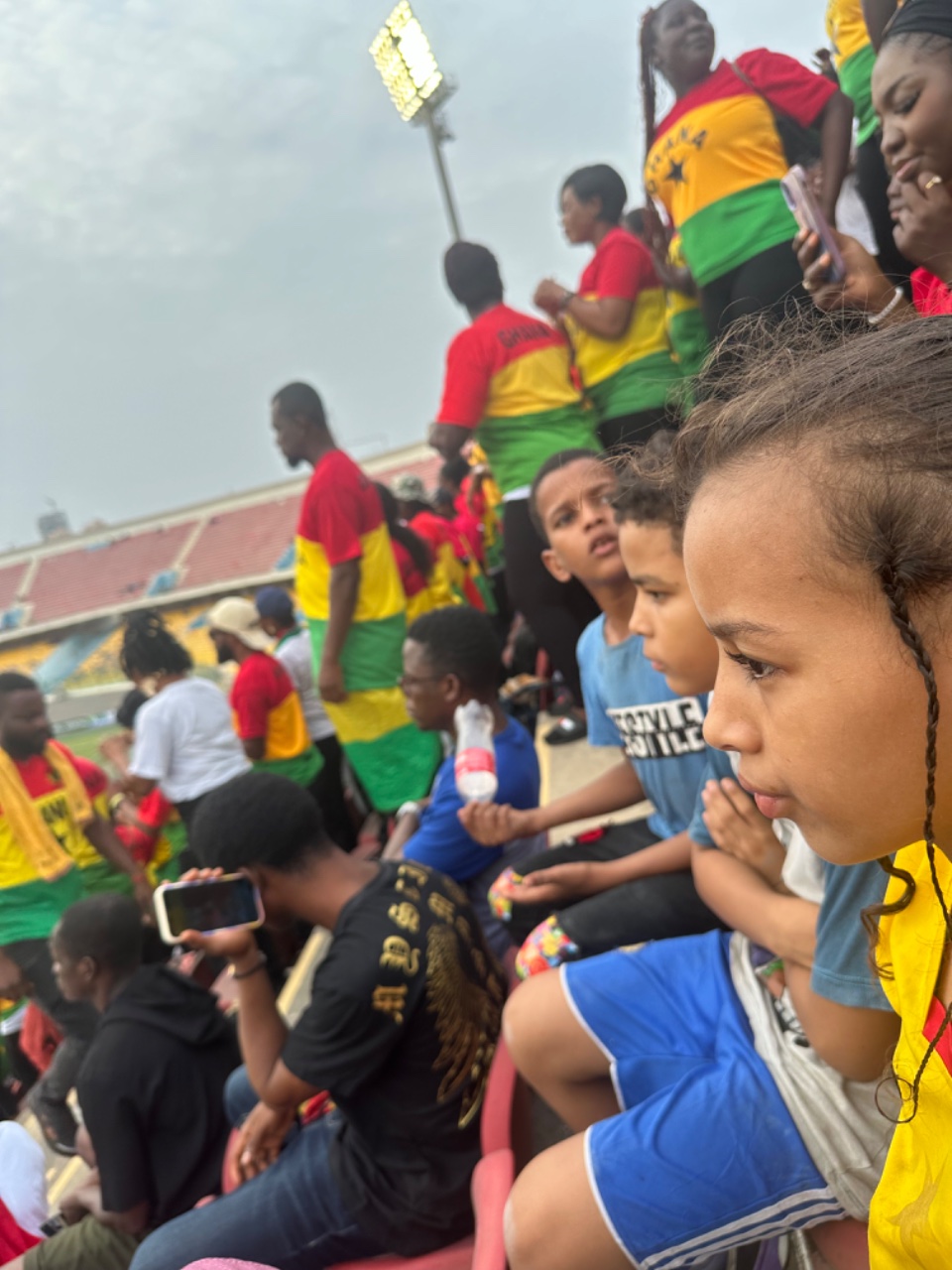 アクラのサッカースタジアムで開催された、ガーナ対ザンビアの女子プロサッカーの試合を見に行きました。ザンビアのチームには、有名なサッカー選手であるレーチェル・クンダナンジ選手が出場しており、ガーナは0対1で惜しくも負けてしまいました。それでも、全員サッカーを習っているインナハウスの子どもたちは大興奮でした!