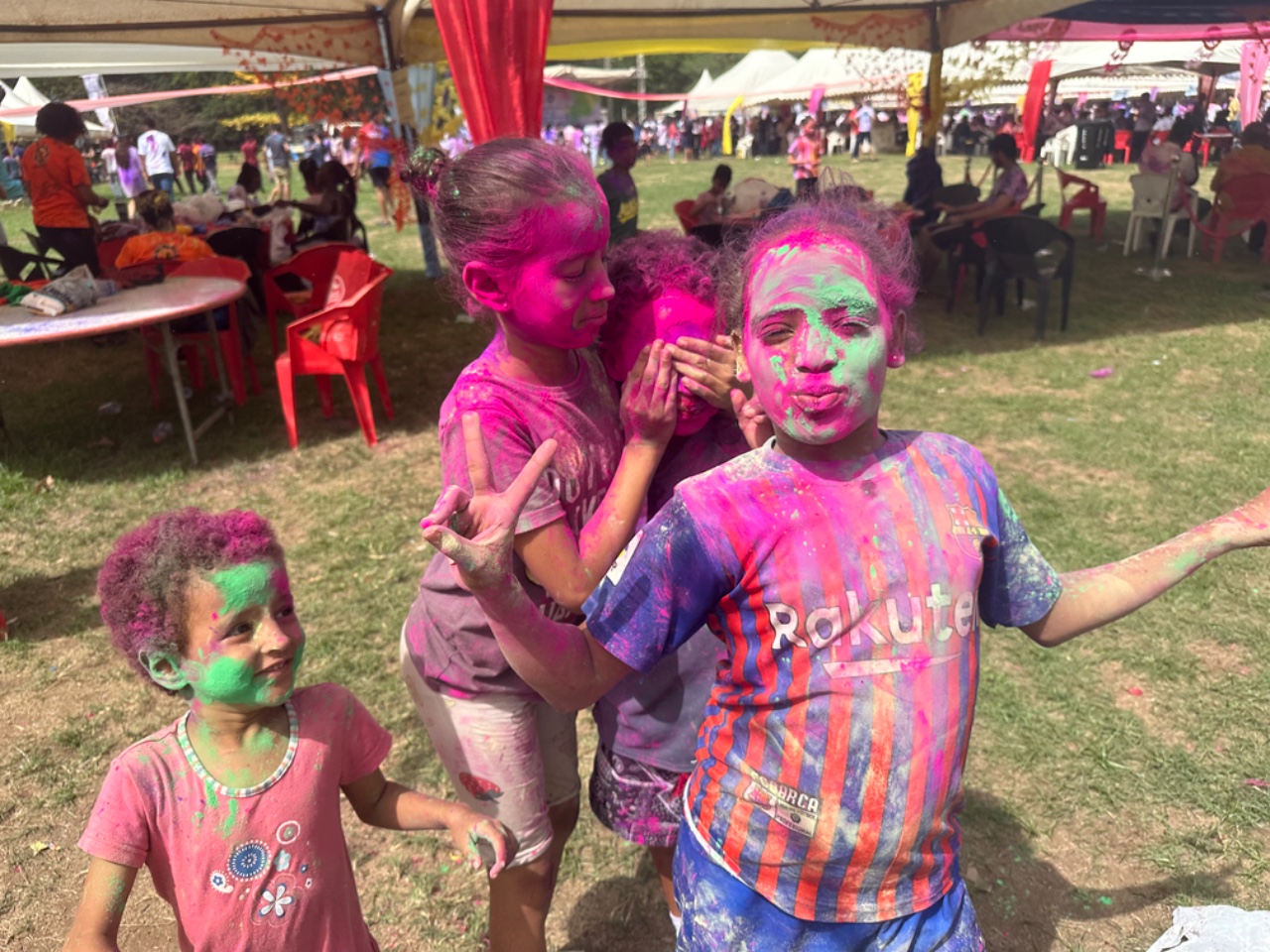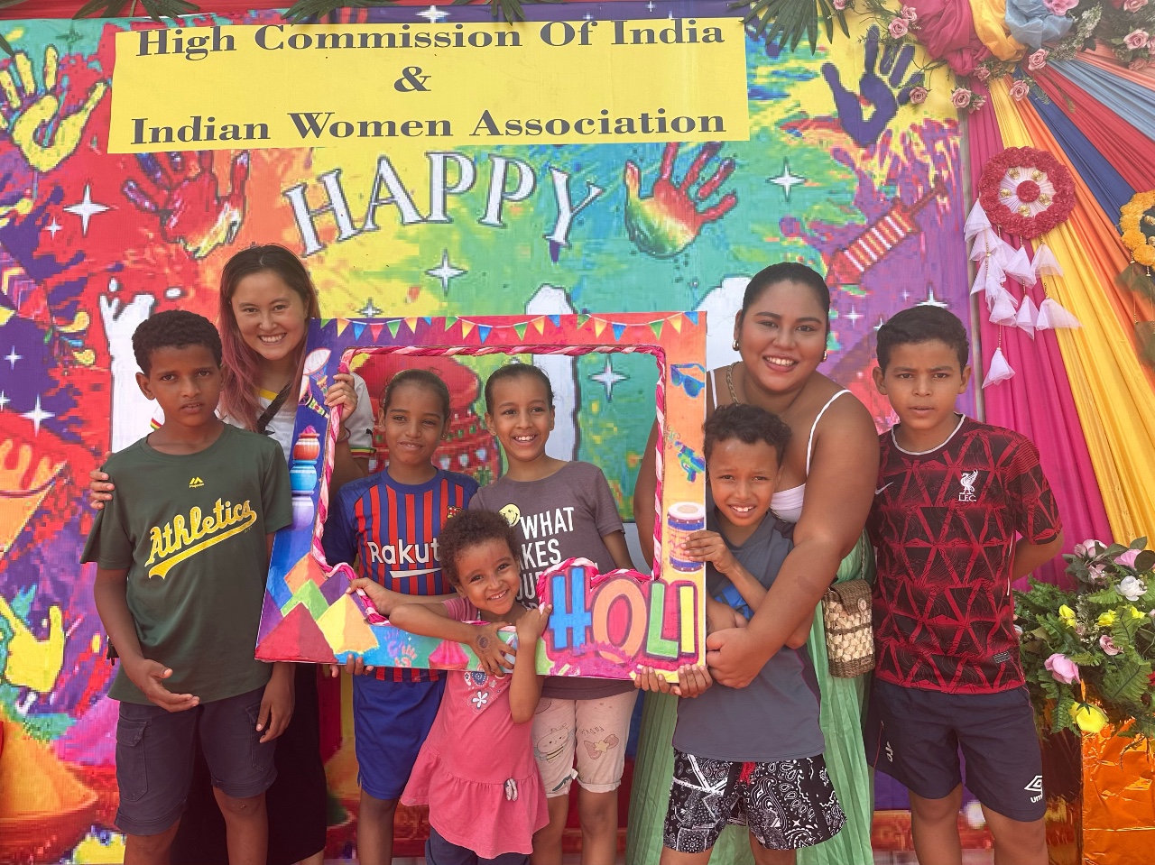 さて、当日ホーリー祭にはガーナ人も参加していましたが、ほとんどがインド人でした。インターナショナルスクールの子どもたちも来ていて、国際色豊かなイベントでした。普段、インド人コミュニティと触れ合うことも滅多にないので、みんなでインドの音楽を聴いたり、インド料理を食べたり、子どもたちにとって良い国際交流になりました。