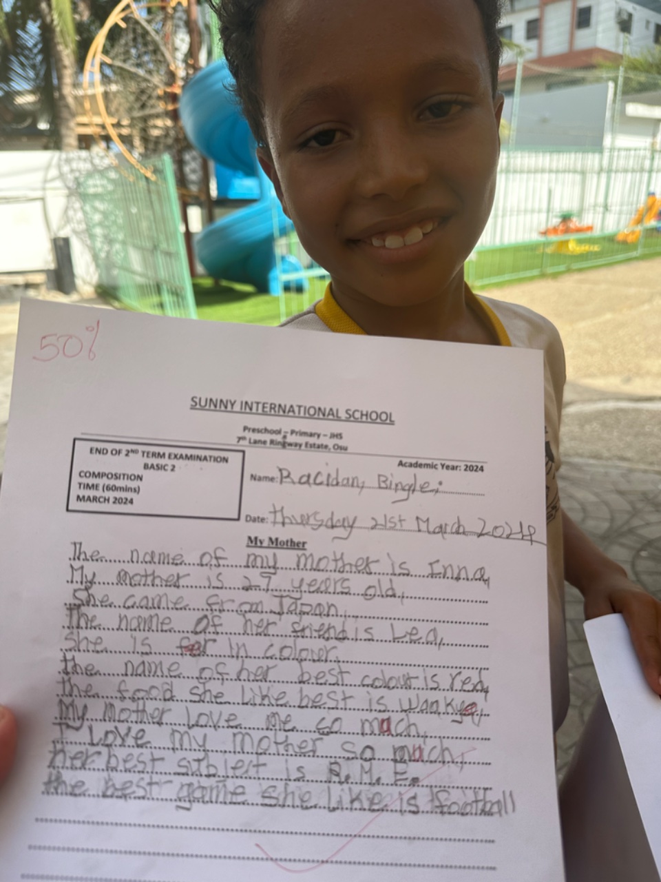 今年も頑張って勉強を続ければ、また飛び級できるかもしれません。ガーナでは飛び級が認められていて、まだ10代前半で大学に行っている子も一定数います。優秀な生徒はどんどん飛び級していくので、ラシダンの能力的には今後も飛び級できると思いますが、もう飛び級させるつもりはありません。学校で学べることは勉強だけではなく、学校で過ごす時間が大切だからです。飛び級はせず、今後も勉強を続けて、よりレベルの高い学校に編入できたらいいなと思っています。ラシダンは今の友達が好きなので編入はしたくないと言っていますが、もっとレベルの高い学校に行ったら、ラシダン自身がもっと楽しめるのではないかなと思います。