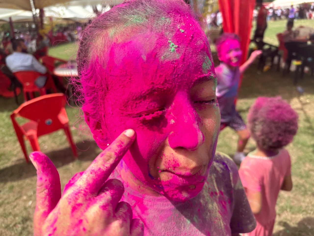 インナハウスの子どもたちと去年も参加し、「来年も絶対行きたい!!」と子どもたちはとても楽しみにしていたので、行くことができてよかったです。しかし断食中のお兄ちゃんたちは、とても暑く日陰もない中で外にでて大騒ぎすると熱中症になってしまうので、ホーリーに参加できなかったのですが、とても残念がっていました。
