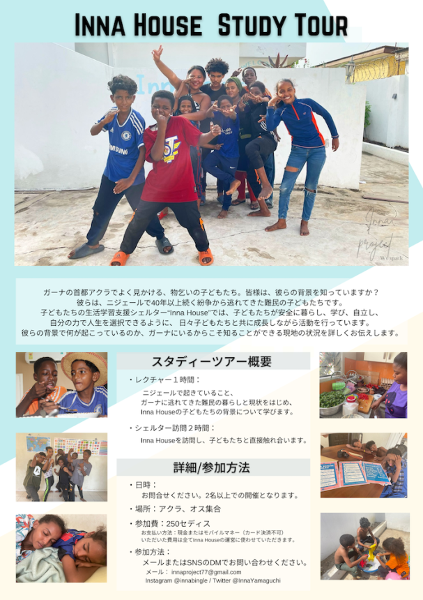 私の活動やガーナのこと、そして難民である彼らが置かれている状況や子どもたちが抱えている問題について、ちょっとした勉強会のような形で実施したいと思っています!