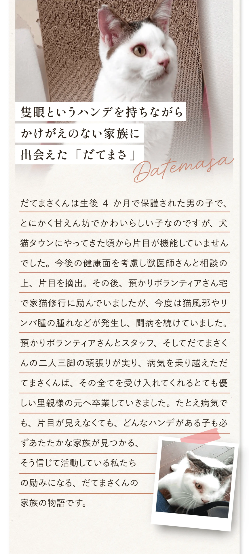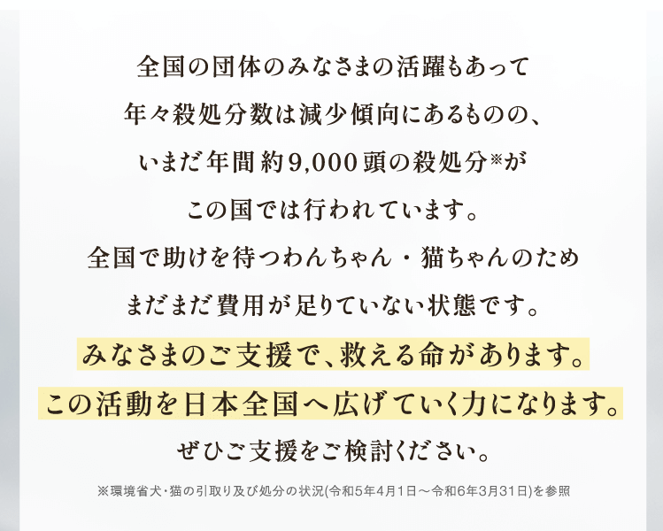 日本を、「殺処分ゼロ」の国にする。そして同時に「動物福祉」を担保する。それは、簡単なことではありませんが、みんなが望み、行動すれば、たしかにやり遂げられることなのです。