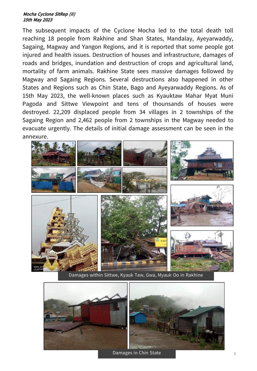 2023年5月14日猛烈なモカサイクロンはミャンマーの西側のラカイン州から上陸して、チン州、マグウェ管区、ザガイン管区、マンダレー管区へと北上しました。