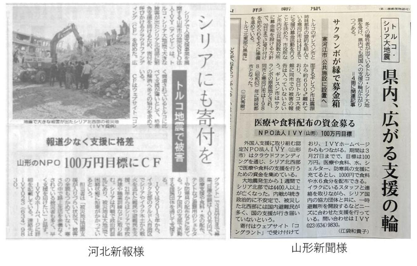 2023-02-16 11:46山形新聞社様、河北新報社様に取り上げていただきました!プロジェクト開始から5日目、目標金額の50%まで到達しました!ご支援いただき誠にありがとうございます。2023-02-16 11:46山形新聞社様、河北新報社様に取り上げていただきました!プロジェクト開始から5日目、目標金額の50%まで到達しました!ご支援いただき誠にありがとうございます。