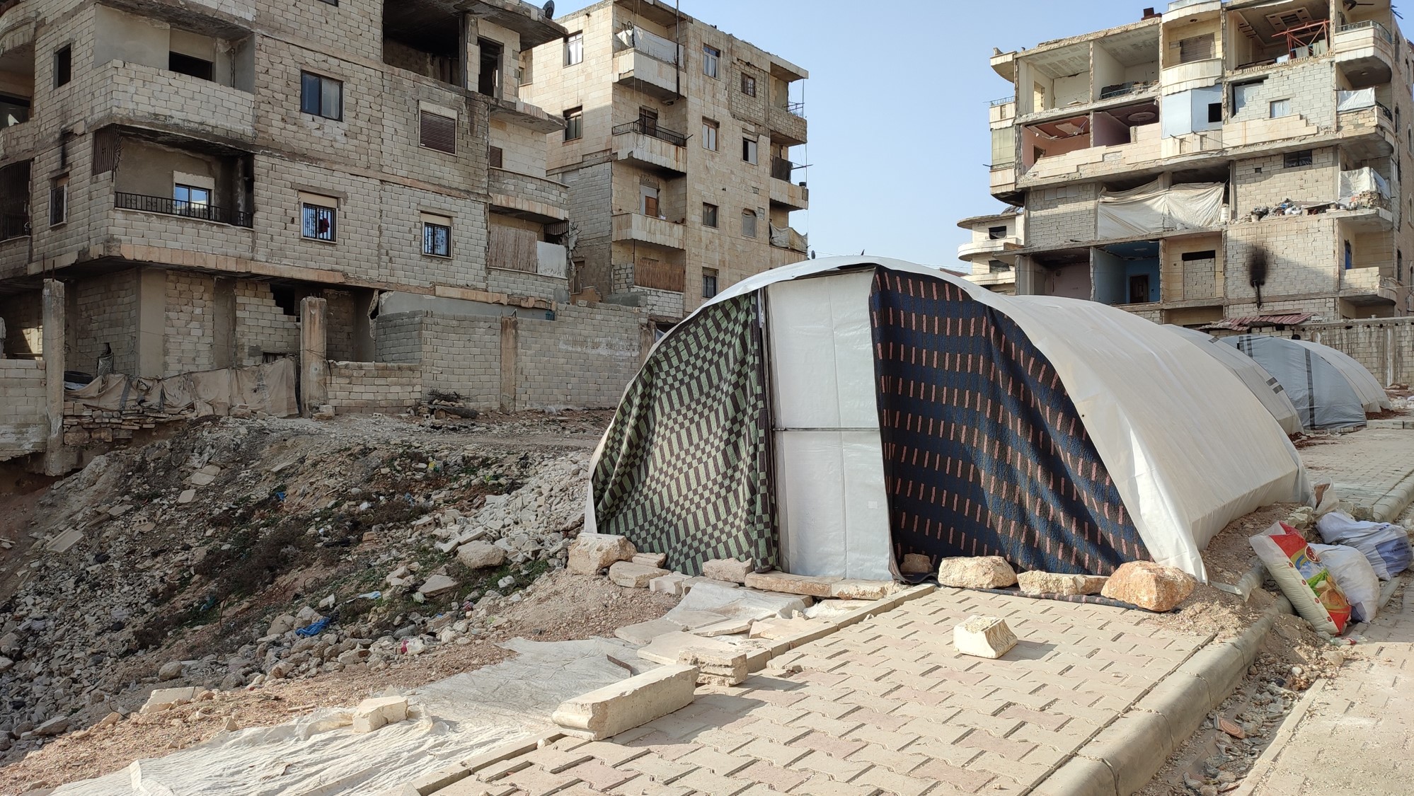家に帰れない人々も多くいらっしゃり、中には町中にテントを張り暮らす方々の姿も見られています。