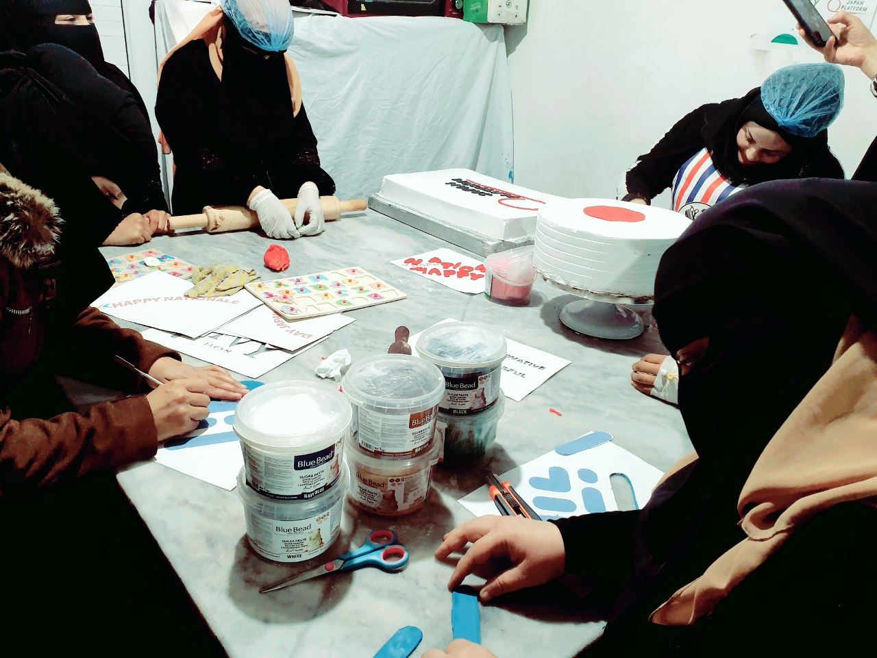 IVYは、紛争により学ぶことができなかった若者たちに、支援を通じて、初等教育や職業訓練の機会を提供しています。今回、パン・製菓コースの受講生が日本の建国記念日をお祝いして、ケーキを作ってくれました。