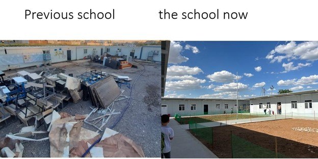 このプロジェクトでは、イラク教育省の基準に沿ったプレハブ校舎を建設することで、教室での学習環境が整備されたました。