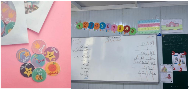 Zainbさんは現在、ステッカーやスピーカー、スライドなどを使って授業を行い、そして研修で学んだたくさんのアクティビティーを行っています。