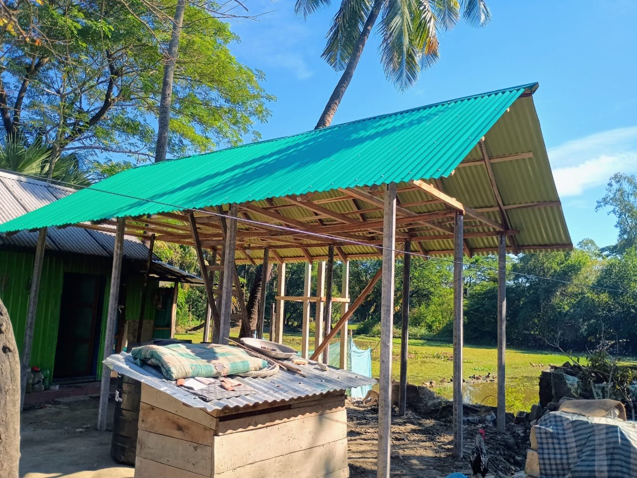本事業では、全1,700世帯を対象に、簡易シェルターの建設支援と、井戸の修理、水衛生キットの配布を行ないました。