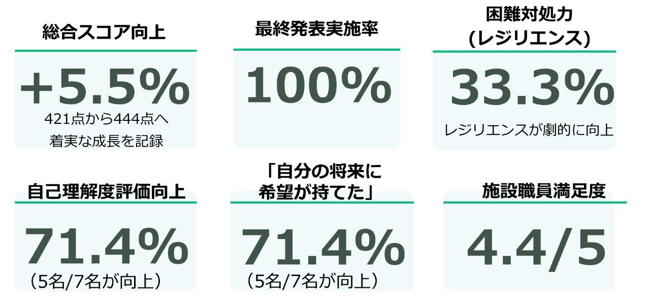 「手をよく挙げるようになったし、お友達もできて話をするようになった」など、変化が日常生活・学校生活へと波及することも確認されました。